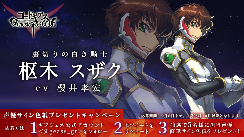 コードギアス Genesic Re Code ギアジェネ に 反逆のルルーシュ より 枢木スザク が参戦 リリース直前放送が9月10日時より配信 スマホゲーム情報ならファミ通app